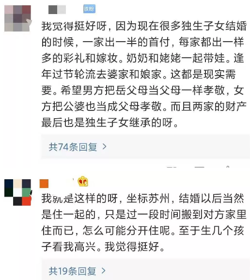家住浙江省杭州市餘杭區的小西和丈夫小爭,都是“85後”的獨生子女,兩人於2016年結婚。結婚前,雙方家庭就已約定好,結婚後小西依然可以住在娘家,也可以到公婆家居住;同理,小爭也如此。而且,兩個家庭商定,小夫妻共生育兩個小孩,按照出生順序,一胎跟男方姓,二胎跟女方姓。家庭裏也沒有外公外婆的概念,小孩對爸爸媽媽的父母都叫爺爺奶奶。