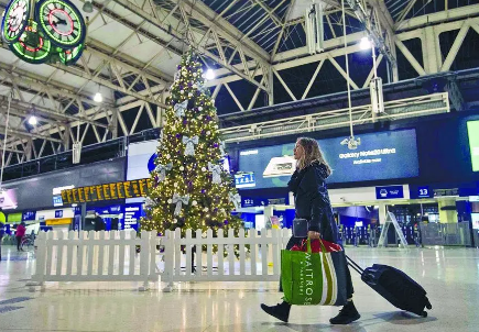 一名英婦經過倫敦滑鐵盧地鐵站大廳的聖誕樹。圖片來源:網路