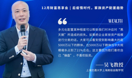 談及原因,吳飛教授認為,資產配置的核心是多元化,這從某種程度上可以幫助高淨值企業家應對可能由黑天鵝事件帶來的損失。“對比近期兩份報告可以看到,資產在5000萬元人民幣以下的客戶中有一半不願意做資產配置,而恰恰這一群體受疫情影響較大,其資產規模縮水21%。”