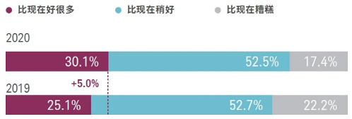 通常認為,在新冠疫情和宏觀環境的衝擊下,人們在選擇財富管理目標時或將會降低財富信心。然而在上海高金與嘉信理財近日發佈的《2020年中國新富人群財富健康指數》報告中,調研結果顯示,中國新富人群(受用範圍在12萬到100萬之間,可投資資產小於700萬人民幣)的財富信心指數受影響不大,在檢視對未來五年自身財富健康狀況時,有30.1%的受訪者認為將比現在好,相較於去年的25.1%還有所上升。相似的是,中國銀行私人銀行《2020中國企業家家族財富管理白皮書》對1000名可投資資產大於600萬人民幣的高淨值企業家客戶進行調研時也發現,企業家對疫情產生的財富影響可控,尤其是資產規模較大的家族,受影響較小。