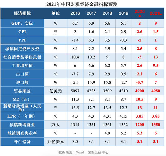 經濟增長:2021年經濟增速顯著加快,走勢前高後低。綜合三大需求分析,2021年經濟增速將顯著回升,預計全年增長9%左右。受2020年基數影響,2021年一季度經濟增速可能高達15%左右,二季度之後逐漸回落,四季度有望回歸到正常增長水準。經濟結構繼續改善,預計消費對經濟增長的拉動作用將在60%以上,投資對經濟增長的拉動作用有所下降。
