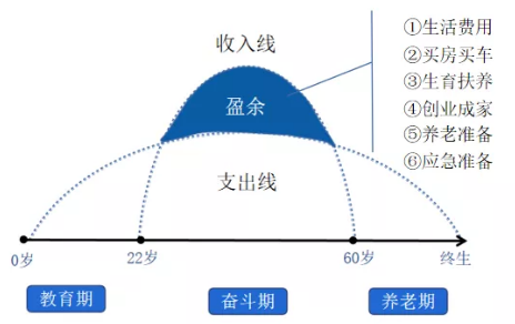 但無論在哪個人生階段,我們都離不開衣、食、住、行。所以說,人生就是一個漫長的消費過程,這就是我們的支出線。
