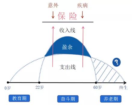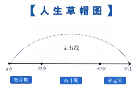 有支出線,當然也有收入線。但我們掙錢的時間是有限的,只有22歲到60歲這段奮鬥期間,才是我們的收入線。所以,我們真正賺錢的時間也就38年左右。