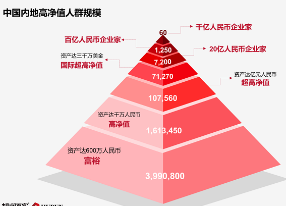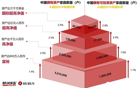 胡潤百富董事長兼首席調研官胡潤表示:“總財富代表這些人的信心,而可投資資產是金融機構最感興趣的。”