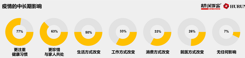 後疫情時代,人生目標重要性排序:健康第一,親情第二,財富第三。此次疫情對高淨值人群影響最大的是健康意識的提升。數據顯示,近八成高淨值人群認為健康是人生重要目標,且近六成將健康排在人生目標重要性的第一位,其次是親情、財富、時間、事業。相比疫情前,77%的高淨值人群認為自己“更注重健康習慣”且63%更珍惜與家人相處;同時,半數的高淨值人群認為疫情改變了他們包括日常娛樂在內的生活方式。