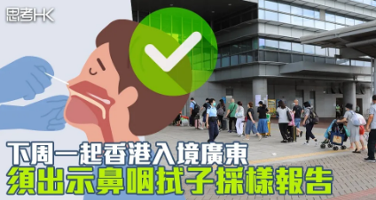 其中明確,自2021年3月1日起,自香港入境廣東人員所持新冠肺炎病毒核酸檢測報告中注明的檢測採樣方式必須為鼻咽拭子或鼻腔咽喉合併拭子(六歲以下小孩以咽喉拭子作為主要採樣方式)。