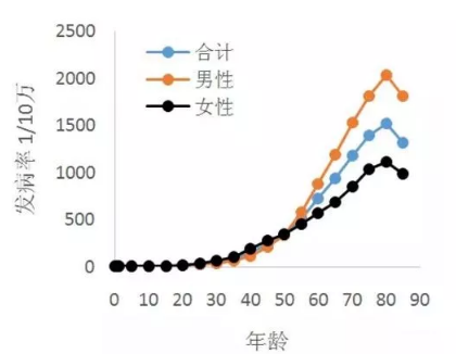 發表在《中國癌症研究》英文雜誌上一項研究就發現:30歲以前癌症發病水準相對較低;40歲左右開始快速上升;80歲-84歲年齡組達到癌症發病高峰。