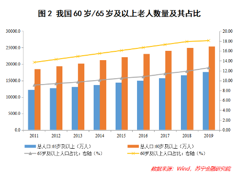 在答記者問中,總理特別提到了老齡產業。眾所周知,我國老齡化程度正日益加劇。國家統計局數據顯示,2019年我國65歲及以上老人數量為1.76億,占總人口比重為12.6%,顯著高於聯合國界定的老齡化社會標準(即65歲及以上老人占比7%);而2019年60歲及以上老人數量多達2.54億,占總人口比重高達18.1%。而在可預見的未來,我國人口老齡化態勢還將繼續加劇,這會給國民經濟的健康可持續發展帶來不小的挑戰。