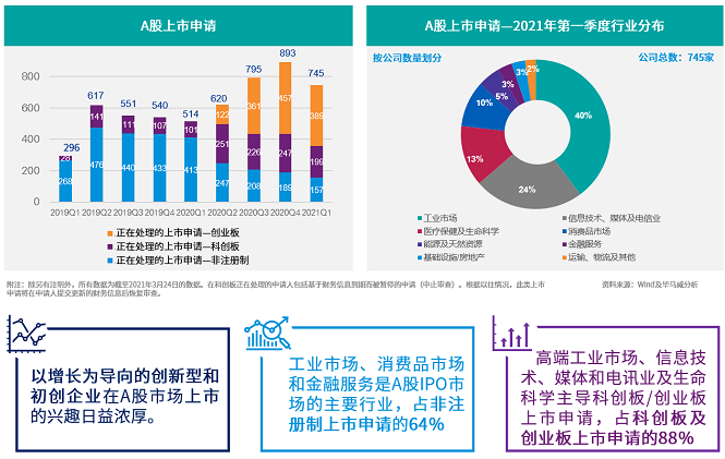 得益於內地本土經濟強勁復蘇及註冊制的推行,A股IPO市場在今年第一季度繼續表現活躍。