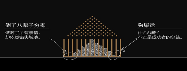 在有增長紅利的行業,比如2000年代的房地產,傾斜高爾頓板的基礎戰略,是“勇氣”。別怕,把腳邁進去就能賺錢。所以王健林說:什麼清華北大,都不如膽子大。