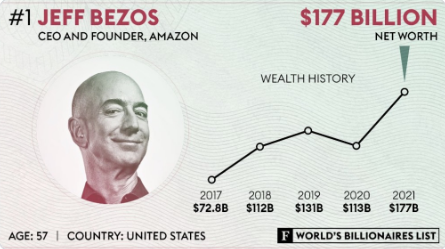 亞馬遜創始人貝索斯(Jeff Bezos)拿下四連霸,第4年登上“全世界最富”的寶座。