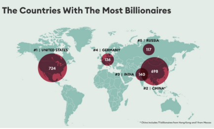 美國上榜者,次於中國有724人。中國,包括內地及港澳臺地區加起來的總富豪人數一共745人。
