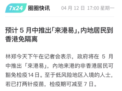 可以讓內地居民到香港免14天隔離