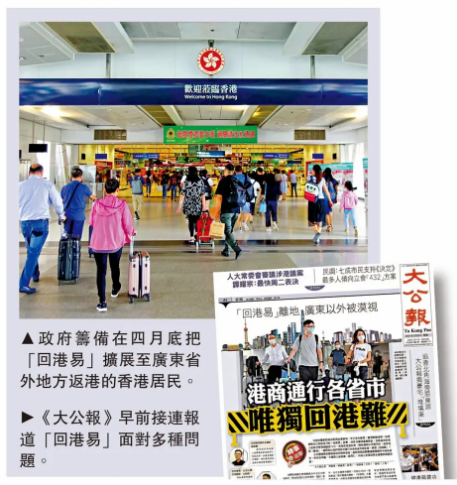 香港特區政府籌備在四月底把「回港易」擴展至廣東省外地方返港的香港居民,食物及衛生局局長陳肇始24日表示,本周內公佈擴大安排細節。她並透露,正爭取港人返內地可縮短檢疫日數。在內地不同省市的港人紛紛表示,希望儘快落實安排,給予港人在內地與香港之間往返以更多的便利。