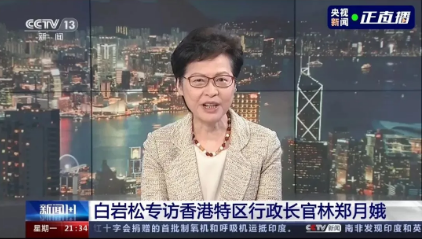 行政長官林鄭月娥5月10日晚接受中央電視臺《新聞1+1》節目訪問,與主持人白岩松視頻連線並回答了若干大灣區熱點問題。