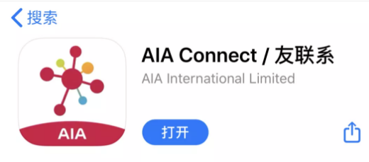 ①打開APP「友聯繫/AIA Connect」(在手機應用商城裏搜索並下載即可)