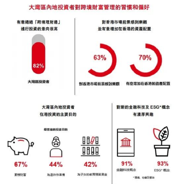 匯豐粵港澳大灣區業務部表示,調查結果顯示,大灣區南向投資者對「跨境理財通」興趣濃厚。廣東擁有千萬元以上資產的家庭達29萬戶,是內地最富裕的地區之一。隨著滬港通、深港通、基金互認等互聯互通機制的推出,香港作為全球資產及財富管理中心,已成為內地投資者在境外進行資產配置的主要金融門戶。待「跨境理財通」啟動後,香港的金融機構可以協助南向投資者進行更多元化的資產配置,把握國際市場的財富機遇。