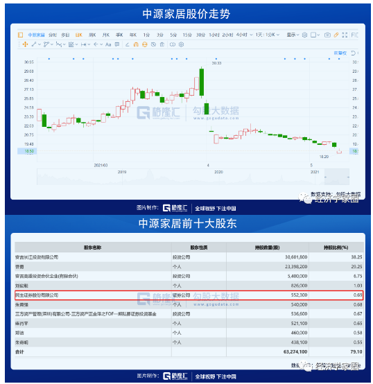 而由於劉多次強調信得過,葉飛就冒了險。在收了不到定金的10%後,葉飛就開始找下家準備買入,當時葉飛聯繫了民生證券和天風證券各買1500萬。但民生證券先買了1543萬後,中源家居的股票就高開低走,盤中一度跌停,最終收跌8.8%,此後兩個交易日,該股又連續跌停,導致了大筆損失,券商資管方面出於機構風控要求,最終平倉止損了。而天風證券方則沒有買入。從一季度末中源家居前十大股東看,民生證券在列。