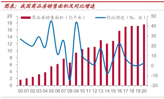 一直以來,房地產就是拉動我國經濟增長的重要引擎,但隨著勞動年齡人口占比的下降,地產需求也逐漸地感受到了增長瓶頸的制約。自2018年以來,我國商品房銷售面積突破17億平方米,而增長速度已經逐漸放緩,很難回到此前兩位數以上的增長時代。