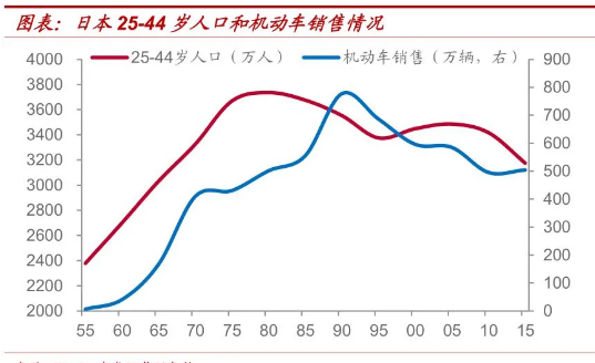 耐用消費品需求也受制約。在人口增速放緩的背景下,不只住房面臨著需求下滑的困境,其實像汽車、家電等耐用消費品也不例外。以日本的發展經驗來看,在勞動年齡人口數量見頂之後,汽車銷售不久也達到了頂峰,其後隨著人口數量下降而逐漸走低。我國家庭中多數耐用品保有量事實上已漸趨飽和,中長期需求增長也將面臨制約。