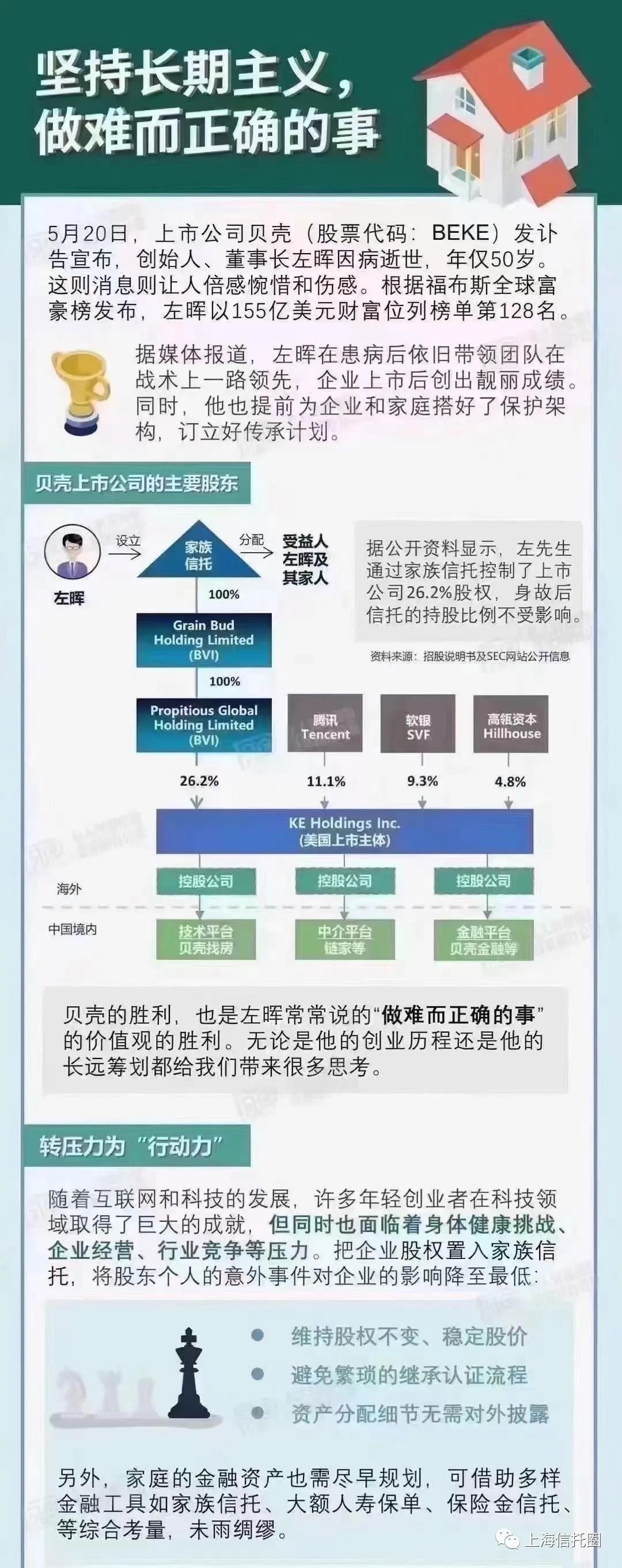 導讀:他提前為企業和家庭搭好了保護架構,訂立好傳承計畫。左暉通過家族信託控制了上市公司26.2%股權,身故後信託的持股比例不受影響。